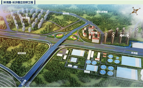 環(huán)灣路-長沙路立交橋工程,長沙路主線西起歡樂濱海城內(nèi)瑞濱路,向東上跨環(huán)灣路后接長沙路跨鐵路高架橋7號橋,東西長900米;環(huán)灣路位于地面層,南起保利香檳國際南區(qū),北至膠州灣大橋收費(fèi)站,工程范圍南北長1140米,橋梁總面積約2萬平方米。主要建設(shè)內(nèi)容包括道路、橋梁、管線、景觀綠化、照明及交通設(shè)施等工程。項(xiàng)目建成后,與南端的瑞昌路立交、北端的李村河互通立交,共同組成環(huán)灣路交通疏解的關(guān)鍵節(jié)點(diǎn)。對于解決歡樂濱海城以及濱海新區(qū)內(nèi)部居民的出行效率低下、繞行距離較長的問題,具有十分重要的意義。