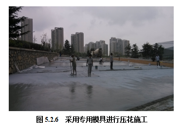 7.2.9彩色混凝土壓花藝術(shù)地坪施工盡量安排在白天,以保證壓模效果一致。