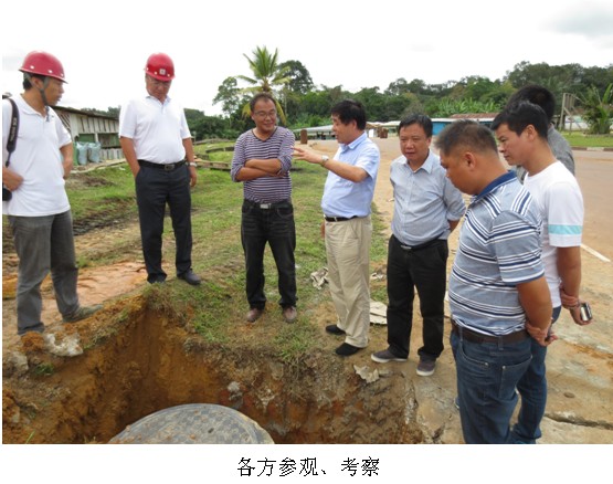 當(dāng)日,項(xiàng)目甲方中地海外赤幾公司呂豐敏總經(jīng)理、設(shè)計(jì)方浙江水務(wù)董宗訖總經(jīng)理、合作方湖南中揚(yáng)陳江濤總經(jīng)理等一行到工地檢查指導(dǎo)工作,對(duì)我項(xiàng)目的現(xiàn)場(chǎng)施工及管理工作予以充分的肯定。
