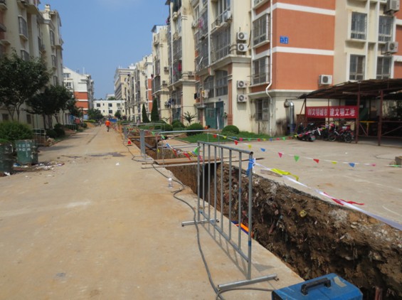 我公司于2013年5月16日中標(biāo)該項(xiàng)目,項(xiàng)目地址位于城陽(yáng)區(qū)康德居小區(qū)、圣富花苑小區(qū),工程內(nèi)容包括二次網(wǎng)、紅線(xiàn)內(nèi)的一次網(wǎng)、混水站內(nèi)安裝、路面的拆除恢復(fù)、綠化的拆除恢復(fù)等。城陽(yáng)區(qū)老舊小區(qū)供熱改造工程作為今年重要的民生建設(shè)項(xiàng)目,各界對(duì)工程的施工質(zhì)量、進(jìn)度以及現(xiàn)場(chǎng)的安全防護(hù)、文明施工都非常關(guān)注。我公司自進(jìn)場(chǎng)以來(lái),施工現(xiàn)場(chǎng)安全防護(hù)工作一直比較到位,施工組織合理,整體進(jìn)度較快,受到了業(yè)主方的好評(píng),并成為其他標(biāo)段學(xué)習(xí)觀摩的榜樣。