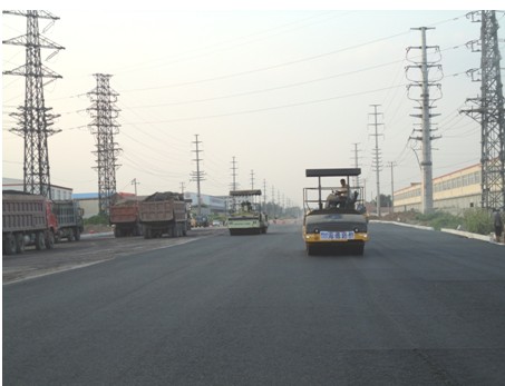 膠州西部城區(qū)柳州路(揚(yáng)州路~蘭州路)道路工程在完成現(xiàn)場(chǎng)路緣石安裝、瀝青混合料訂貨、施工機(jī)械進(jìn)場(chǎng)等各項(xiàng)準(zhǔn)備工作后,于2013年8月31日開始了瀝青混凝土路面的攤鋪工作,并于9月8日完成揚(yáng)州路—蘭州路段瀝青混凝土攤鋪,鋪裝總面積約62500m2。