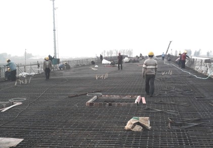 國慶期間,萊西項目部施工現(xiàn)場一片忙碌景象,工作人員按照原施工計劃,齊心協(xié)力,日夜奮戰(zhàn),分秒必爭,切實組織現(xiàn)場施工生產(chǎn)。節(jié)日期間,項目部積極調(diào)動人力資源,盡可能提早完成主跨混凝土澆筑計劃。工地現(xiàn)場,木工、鋼筋工、電焊工等都在各自的工作面上緊張有序作業(yè),現(xiàn)場技術(shù)人員有的根據(jù)施工需要組織工人作業(yè),有的就鋼筋模板施工過程中容易出現(xiàn)的問題進行現(xiàn)場技術(shù)交底,有的則進行測量放線,為后續(xù)施工及工作面開展添油加碼。