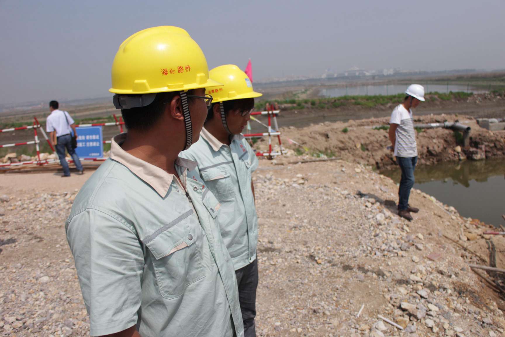 到達施工現場時已近上午10點,太陽炙烤著工地,現場沒有一處蔭涼可供休息,管理人員指揮著工人在現場忙碌著,并未因天氣的炎熱而有所怠慢。工程自開工以來,項目部狠抓質量和安全文明施工,按照省級“安全文明工地”的標準編制了《安全文明施工策劃》、《安全文明投入計劃》、《創(chuàng)獎規(guī)劃》等方案,施工過程中,項目部嚴格落實各項安全文明施工措施,重點在施工圍擋、渣土覆蓋、材料堆放、洗車平臺、道路硬化、臨邊防護等方面,同時每天中午召開一次生產工作會議,在會議中通報、討論生產動態(tài),解決施工過程中遇到的問題。在6月份由青島城投路橋紅島片區(qū)開發(fā)建設項目辦組織的安全文明施工綜合檢查中,一分公司大洋一路標段名列第一,受到業(yè)主、監(jiān)理的一致好評。