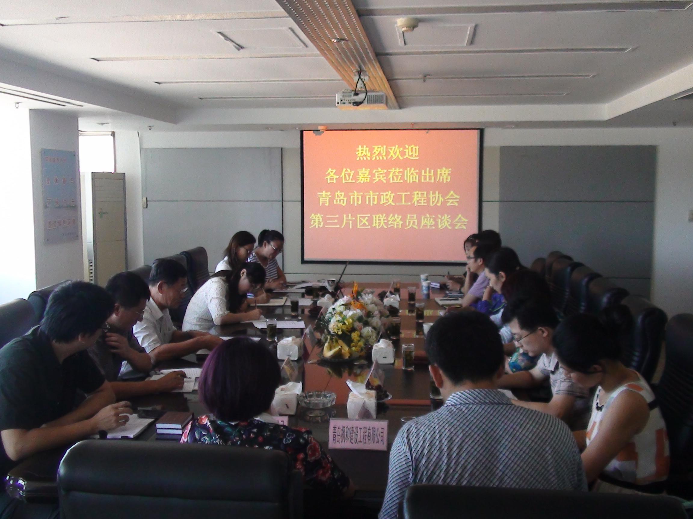 2014年9月4日下午14點(diǎn),由青島市市政工程協(xié)會(huì)發(fā)起組織、我單位主辦的協(xié)會(huì)第三片區(qū)首次聯(lián)絡(luò)員座談會(huì)在我公司會(huì)議室召開。青島市市政工程協(xié)會(huì)副會(huì)長(zhǎng)王國(guó)良、秘書處副秘書長(zhǎng)張青、三片區(qū)組長(zhǎng)單位青島海德路橋工程股份有限公司執(zhí)行總裁寇媛媛出席了本次座談會(huì),參加此次會(huì)議的還有片區(qū)副組長(zhǎng)單位青島市益水工程股份有限公司、青島市政監(jiān)理咨詢有限公司、萊西市市政管理處以及片區(qū)其他會(huì)員單位的聯(lián)絡(luò)員,共計(jì)15家單位。