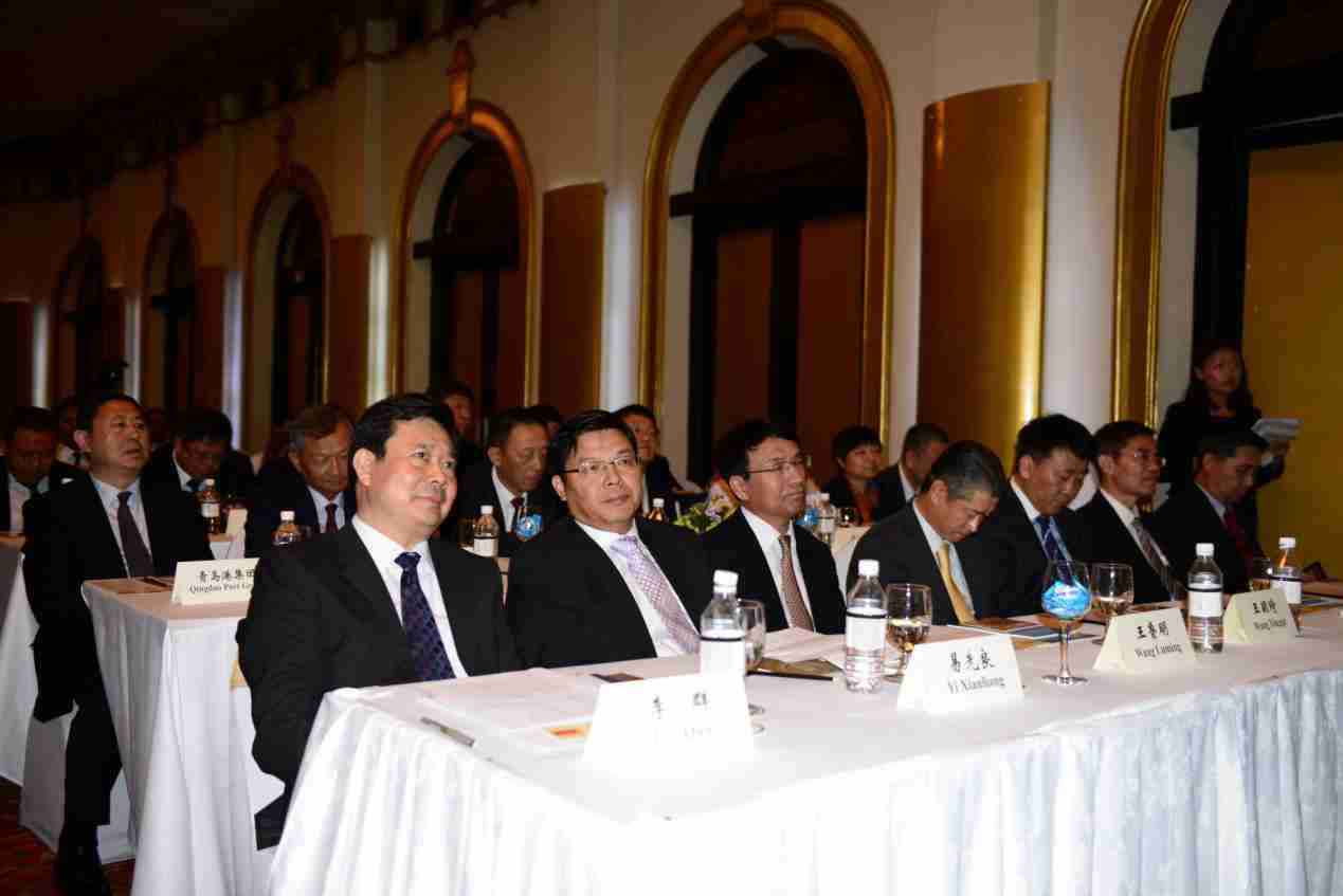 左前排左起分別為:山東省委、青島市委書記李群、中華人民共和國駐斯里蘭卡大使易先良、