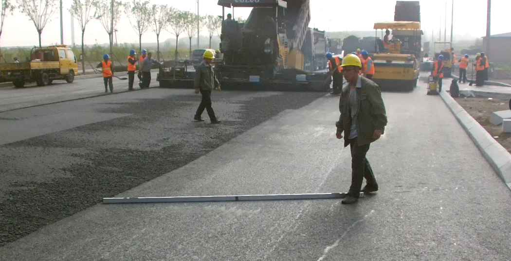 施工前,按照制定的施工方案對每一位人員進行技術交底,做到各有其責,相互配合;使用瀝青灑布車在已清掃完畢的路面上進行瀝青粘層油的灑布,達到覆蓋率0.5L/m2以上。施工過程中,項目部人員嚴格技術規(guī)范進行,確保工程質量滿足設計要求。為保證攤鋪機接縫的熱處理,兩臺攤鋪機成梯形攤鋪,距離保持在20m左右。雨水篦子順坡環(huán)節(jié),應高新區(qū)質監(jiān)站要求,嚴格按照圖集施工,在橫向0.5米與縱向1米處開始順坡,務必達到業(yè)主與質監(jiān)站的要求。路緣石邊緣夯實中,對于小型壓路機未碾壓到位的部位,采用平板夯進行夯平壓實,由專職施工人員,鏟除由于擠壓高出路面的瀝青料,保證路緣石接觸面處平整、順直。初壓后,專職管理人員緊跟平整度測量,發(fā)現平整度不好的部位及時進行補料處理,保證面層瀝青平整度達到設計與規(guī)范要求。分公司總經理程顯光親力親為,現場監(jiān)督瀝青碾壓工作,嚴格控制碾壓時間與碾壓速度,嚴禁壓路機在已成型的路面上停留,杜絕因壓路機停留造成的輪跡波浪現象,保證了面層瀝青的平整度。為保證南北兩幅接茬平順,由專職管理人員帶領工人對道路中線進行邊緣切直處理,保證了北半幅瀝青面層攤鋪的順直。