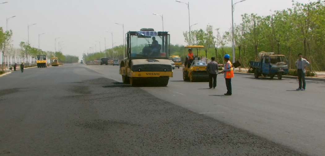 本次施工投入攤鋪機、各類型壓路機、平板夯、裝載機等大型機械共10余臺,管理人員、瀝青攤鋪工人共50余人,歷時兩天,完成工程量達36000㎡?,F場所有工作人員,把工地路面當做餐桌,輪班吃飯,保證面層瀝青攤鋪無間斷施工,確保瀝青面層的整體效果。攤鋪過程中,嚴格按照規(guī)范要求進行,測量放線、進場測溫、攤鋪測溫、碾壓測溫、平整度測量等工作井井有條。對雨水斗等特殊位置,嚴格按照高新區(qū)質監(jiān)站要求進行順坡。整體質量與觀感效果達到了業(yè)主與監(jiān)理的要求,甲方代表與公司各級領導在現場觀摩中均對此次面層攤輔施工及大洋一路紅島項目部在整個工程施工過程中做出的努力與貢獻給予了高度評價。