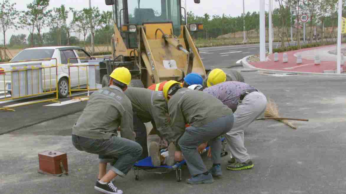 此次演練前,公司總工室、工程管理部、機(jī)械物資部、一分公司共同組織制定詳細(xì)的演練計(jì)劃及應(yīng)急預(yù)案。下午14:00,在大洋一路聚賢橋路路口,一輛小型鏟車(chē)在清理現(xiàn)場(chǎng)回填料時(shí),由于存在視野盲區(qū),司機(jī)觀察不周,撞傷一名工人,導(dǎo)致工人小腿骨折,事故發(fā)生后項(xiàng)目部立即啟動(dòng)《機(jī)械傷害應(yīng)急處置預(yù)案》。