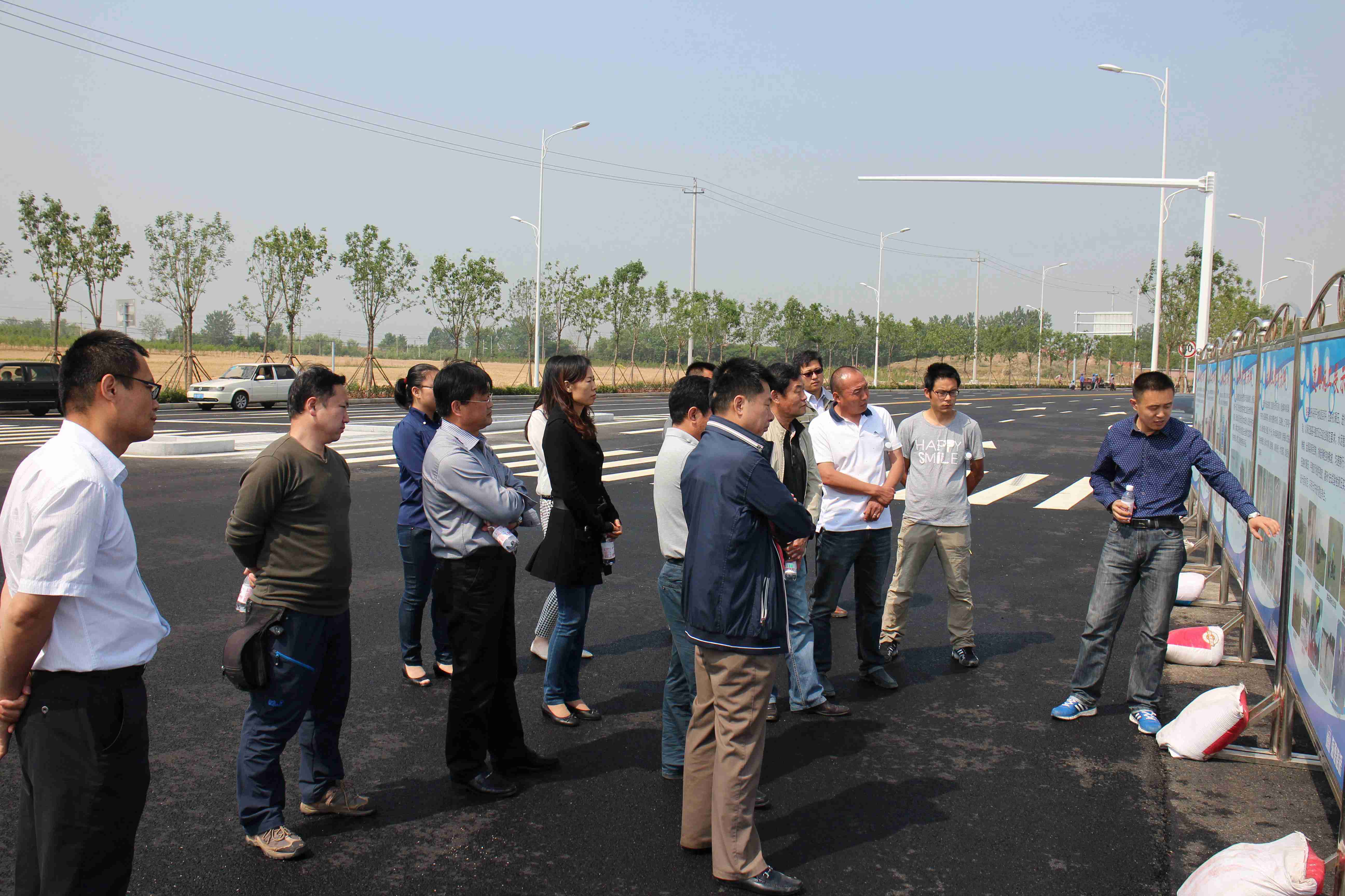 此次觀摩活動,在施工現(xiàn)場設置了6塊安全文明施工展示牌以及1塊應急預案演練展示牌,我公司一分公司總經(jīng)理程顯光現(xiàn)場介紹了施工過程中對揚塵的控制、文明施工方面的設置、安全教育培訓工作以及排水施工和道路施工過程中對關鍵工序的質(zhì)量控制。隨后,一行人在施工管理人員的引領下參觀了施工現(xiàn)場和項目部,每到一處,便對該項施工進行介紹,從施工工藝、施工注意事項進行詳細的介紹,又將好的做法介紹給觀摩人員。