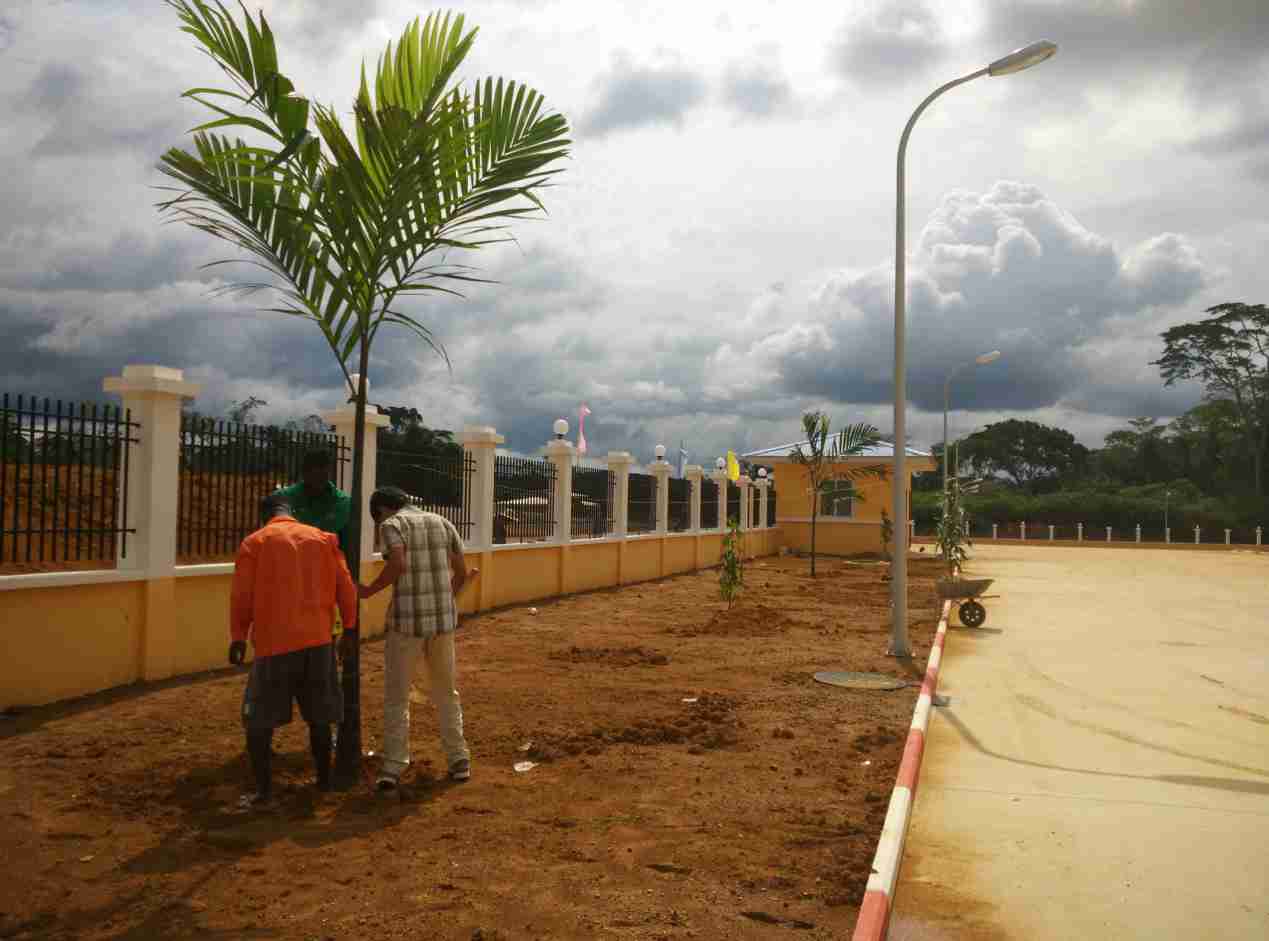 赤道幾內(nèi)亞是一個嚴重依賴石油出口的國家,受當前國際油價持續(xù)低迷影響,赤幾政府的財政收入急劇下滑,基礎(chǔ)設(shè)施投資大幅縮水。赤幾姆比尼水廠管網(wǎng)工程完工后,后續(xù)工程承攬困難,項目部一度面臨項目中繼的窘境。但是我項目部人員迎難而上,克服人員少,任務(wù)重的困難,積極拓展赤幾綠化市場,在項目部全體人員的共同努力下,已成功承攬多個綠化工程。