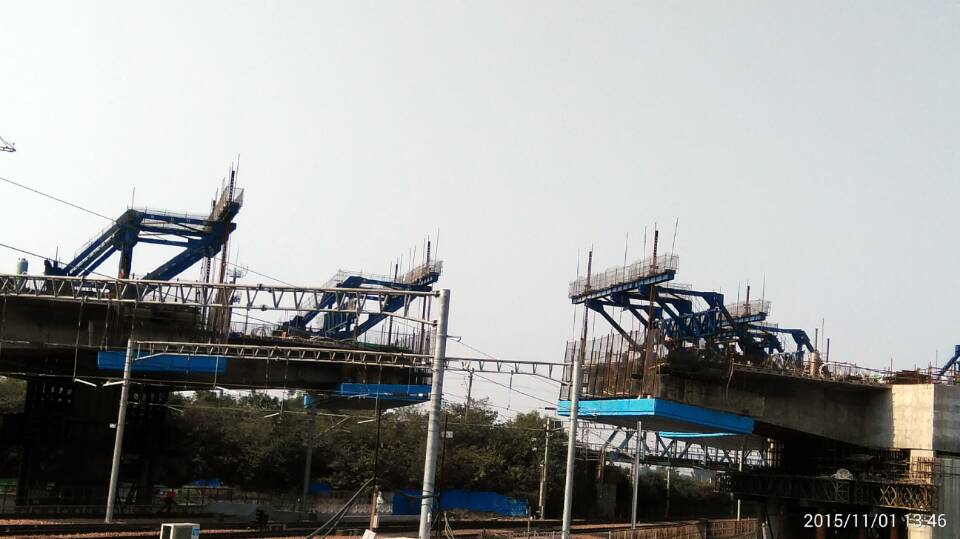 2016年1月7日下午1點(diǎn),鄭州市京廣快速路(北三環(huán)-連霍高速)京廣鐵路立交工程掛籃橋左幅中跨合龍段正式開(kāi)始砼澆筑。經(jīng)過(guò)五個(gè)小時(shí)的緊張有序施工,左幅順利合龍,標(biāo)志著本工程主體結(jié)構(gòu)全部完成。