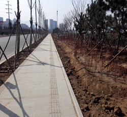 該工程于2015年8月份正式開工,11月底施工范圍垃圾外運(yùn)全部完成,春節(jié)前管道工程施工完成,并進(jìn)行種植土回填。春季是苗木栽植的黃金時(shí)節(jié),為提高綠化苗木成活率,項(xiàng)目部提出“抓早字、促進(jìn)度”的施工方針,正月初五人員全部到位,正月初七復(fù)工。深翻地、挖樹穴,調(diào)苗木,同江路項(xiàng)目部人員積極協(xié)調(diào)組織,克服冬期施工、交叉作業(yè)等重重困難,全力推進(jìn)施工進(jìn)度。截止目前,喬木種植已基本完成,灌木種植完成70%,地被也在緊張有序的展開施工,景觀效果已初步體現(xiàn)。