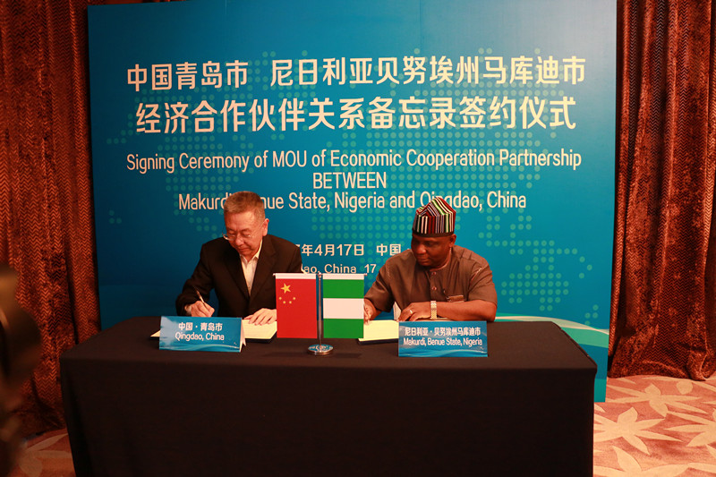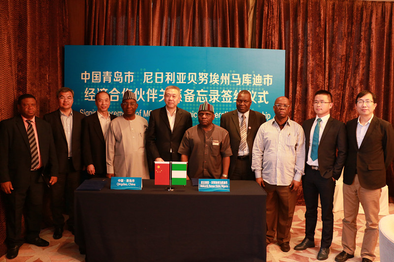 此次交流活動得到了青島市商務(wù)局的大力支持,青島市商務(wù)局副局長淳于賢力代表青島市政府與尼日利亞貝努埃州馬庫迪市簽訂了經(jīng)濟(jì)合作伙伴關(guān)系備忘錄。