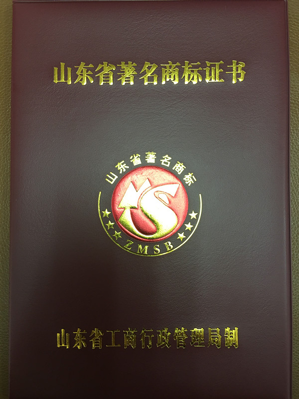 根據(jù)省工商局《關于認定山東省著名商標的通知》和市工商局《關于我市48件新獲認定和109件續(xù)展認定山東省著名商標的通報》,我公司注冊商標繼2013年10月獲得市著名商標后,本次成功申獲山東省著名商標,有效期三年。