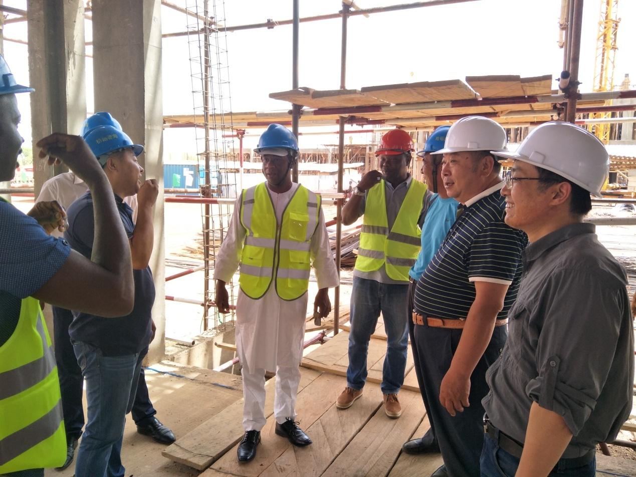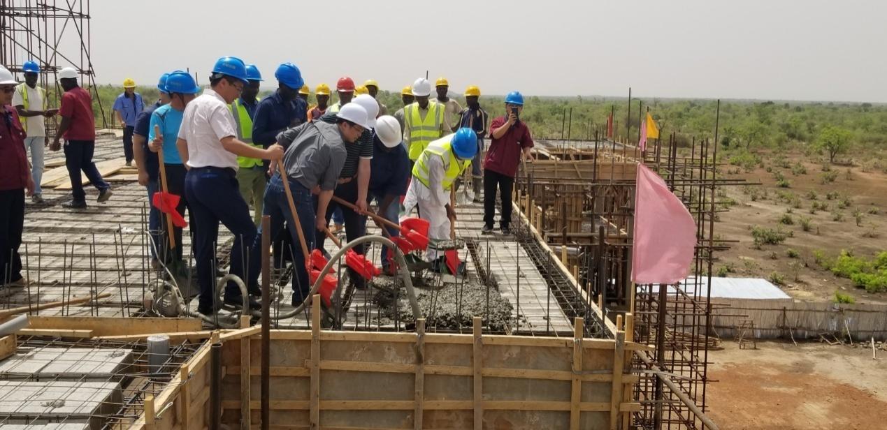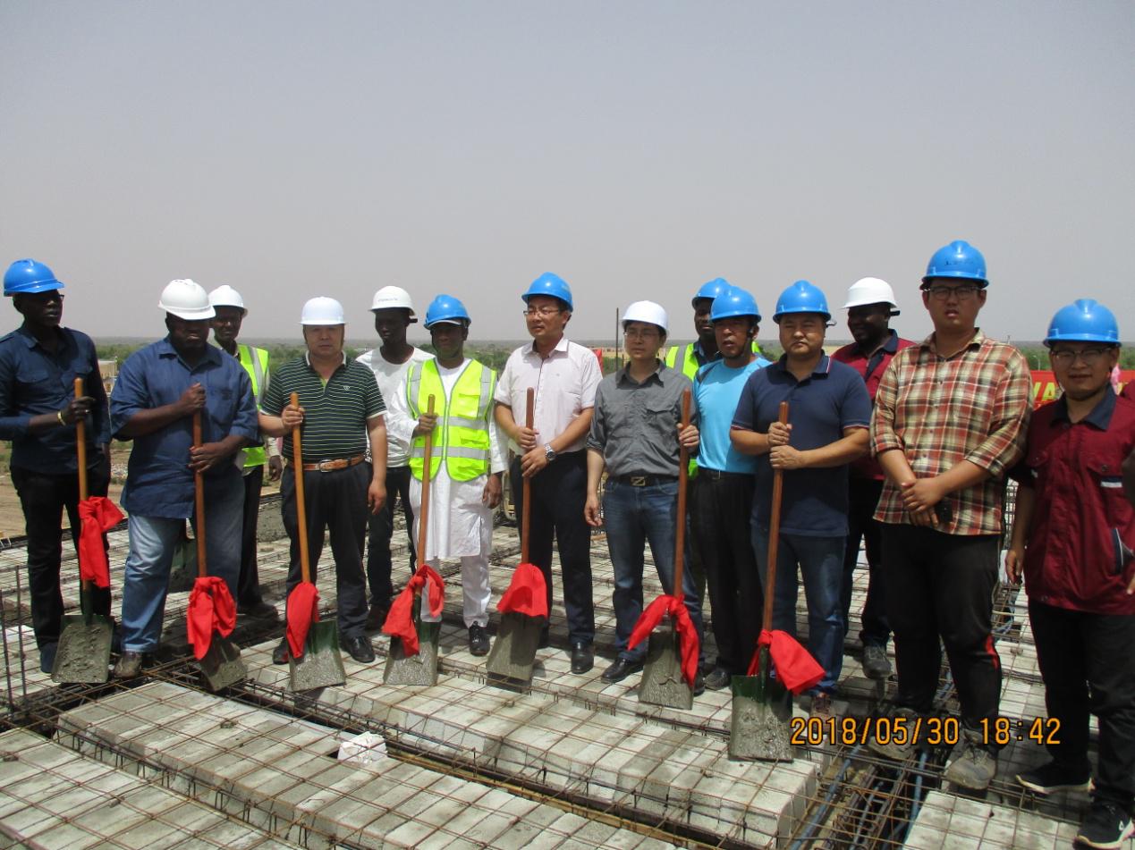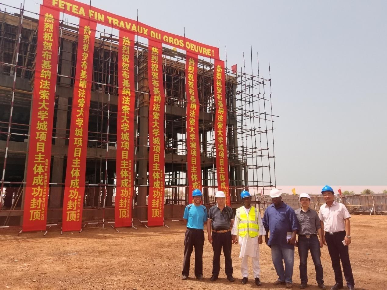 伴隨著中國和布基納法索正式恢復(fù)大使級外交關(guān)系的喜訊,當(dāng)?shù)貢r(shí)間2018年5月29日上午10時(shí),由我集團(tuán)公司承建施工的布基納法索首都瓦加杜古第二大學(xué)城項(xiàng)目暨行政樓工程主體結(jié)構(gòu)歷時(shí)6個(gè)月也喜迎封頂。業(yè)主代表Babby先生、監(jiān)理代表Wattara先生、集團(tuán)副總裁兼國際部總經(jīng)理莊作鵬、集團(tuán)副總裁楊金山等到現(xiàn)場參加了封頂儀式。