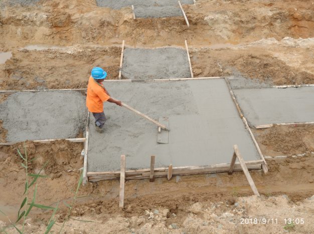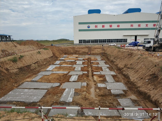 2018年9月11日,晴空萬里,在業(yè)主、監(jiān)理及項目部各負責人的見證下,隨著基坑西北側最后一個獨立柱基礎墊層混凝土的澆筑完成,由我公司承建的即墨田橫食堂項目混凝土墊層順利完成澆筑。