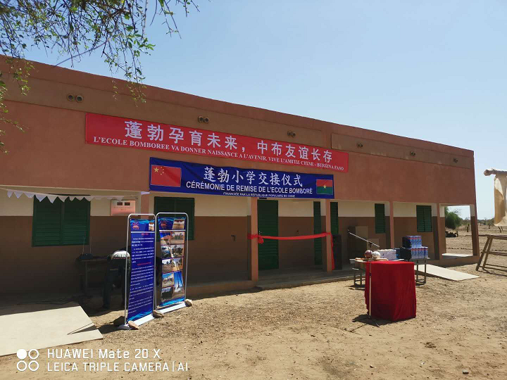 儀式于當?shù)貢r間上午11時許舉行,中國駐布基納法索大使代表羅曉奎秘書與布基納法索國民教育、掃盲和國家語言推廣部部長斯坦尼斯拉斯·瓦羅等布方代表約百余人共同出席了交接儀式。儀式上,Moktedo鎮(zhèn)鎮(zhèn)長、小學校長、教育部部長先后發(fā)言,感謝中國政府對布基納法索的幫助,在中布復交不到一年時間里就為布基納法索建設了示范小學,并對中方企業(yè)的施工質(zhì)量和速度表示贊許。中國大使代表羅曉奎秘書發(fā)言,熱烈祝賀援布示范小學蓬勃小學正式移交,誠摯感謝有關(guān)方和附近居民對項目建設的支持,希望布基納法索的老師和學生在新的校舍中學習、生活愉快。儀式現(xiàn)場還有當?shù)厝嗣駸嵛璞硌?、鑰匙交接、剪彩儀式、學習用品捐贈活動,將儀式活動推向了高潮。