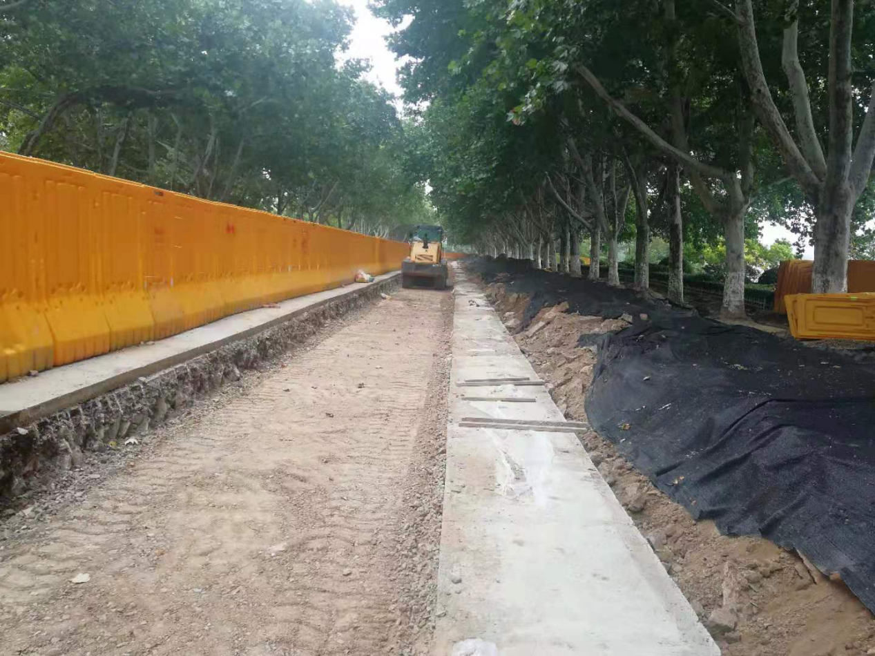 迎賓路改造工程位于徐州市泉山區(qū),道路全長1270m,施工內(nèi)容為車行道拓寬、人行道鋪裝。全線道路下有燃氣管道且施工期正值雨季,路基、基層施工難度大,項目部多次會同市政專家、各相關(guān)單位研究管線保護及施工方案。經(jīng)過兩個月突擊施工,迎賓路改造工程順利完工。
