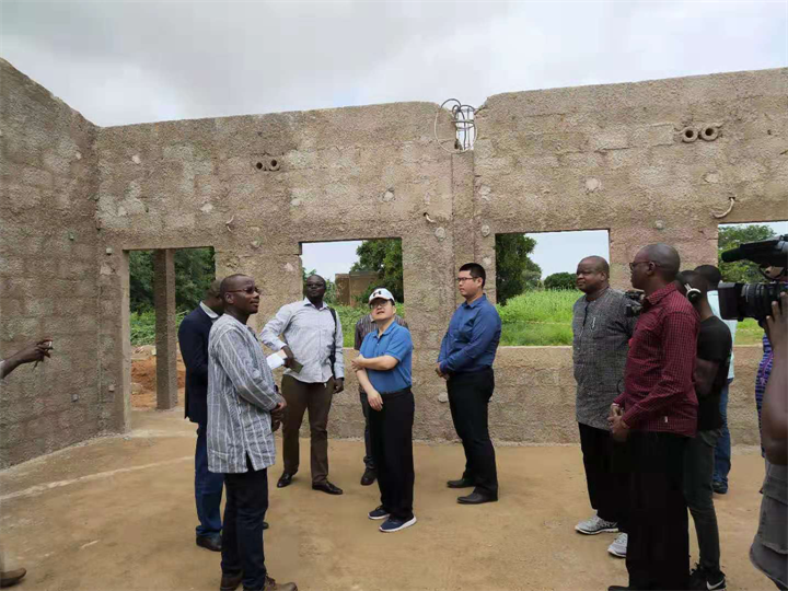 瓦羅部長及李健大使在集團分公司經理王勃陽的陪同下,共同視察了ZINIARE小學施工現(xiàn)場,參觀了現(xiàn)場教室及廁所主體,桌椅、鋼結構及水井,對我集團的施工質量和進度給予高度的認可。