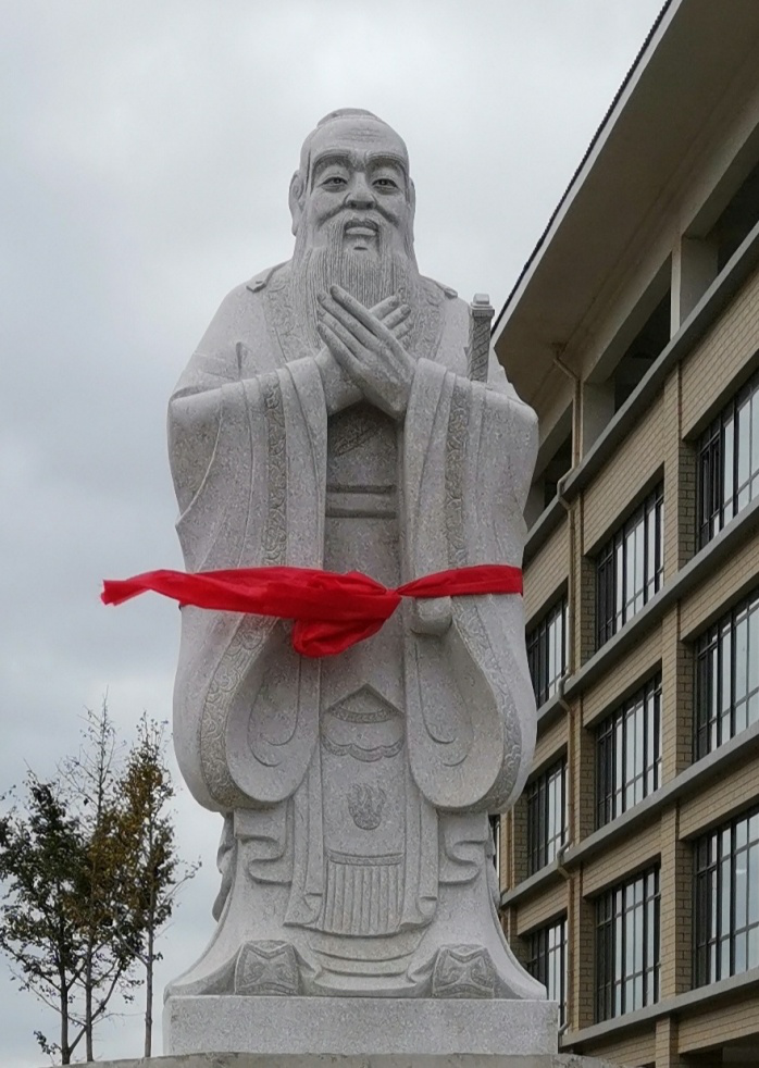 本次捐贈的孔子雕像高約3米,采用上等花崗巖雕刻制作,尊重歷史依據(jù)、約定俗成印象,準(zhǔn)確體現(xiàn)了其偉大思想家、教育家及中國傳統(tǒng)文化形象代表身份。體現(xiàn)出其莊嚴(yán)慈祥、和藹和諧、謙和智慧的萬世師表形象。表達(dá)了集團(tuán)公司對煙臺工貿(mào)技師學(xué)院40年來砥礪前行、匠心筑夢、教書育人的崇高敬意。