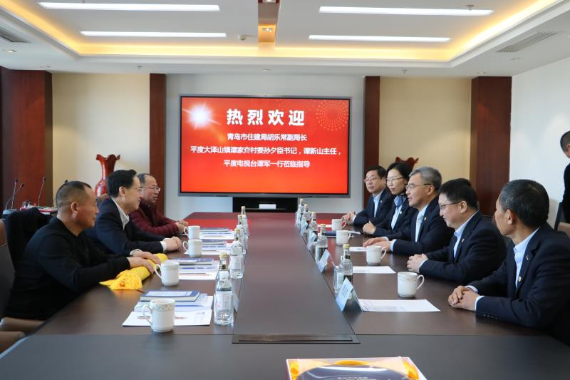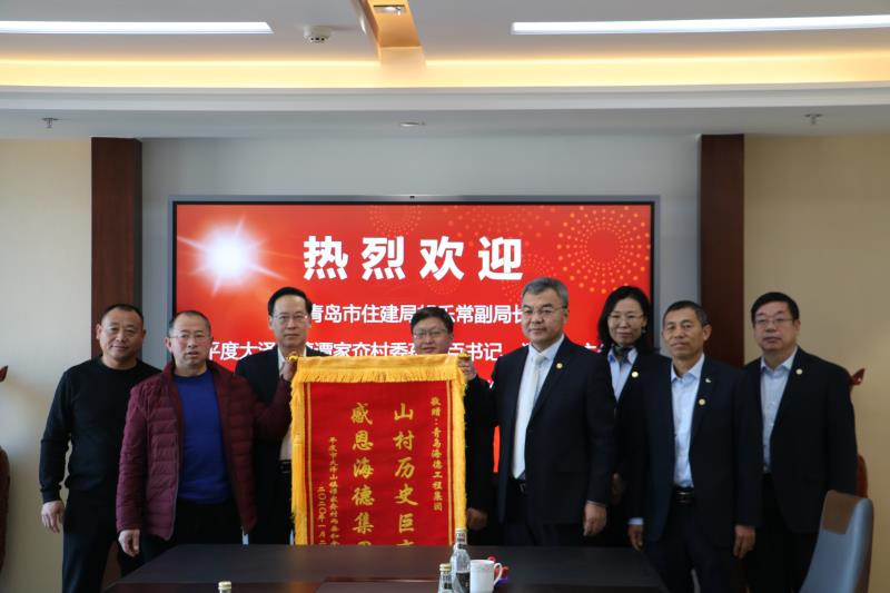 2020年1月21日上午,平度大澤山鎮(zhèn)譚家夼村委書記孫夕臣、村委主任譚新山,平度電視臺記者譚軍一行到訪集團(tuán)贈送錦旗。青島市住建局胡樂常副局長、集團(tuán)董事長鞏光磊、執(zhí)行總裁寇媛媛、執(zhí)行總裁孫成山,集團(tuán)副總裁、工會主席呂同占,二分公司副總經(jīng)理夏志良在集團(tuán)會議室出席此次活動。