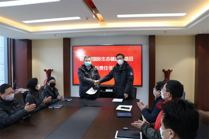 2月21日根據(jù)集團(tuán)項(xiàng)目考核制度要求,嶗山灣國際生態(tài)健康城項(xiàng)目目標(biāo)責(zé)任書簽訂儀式在集團(tuán)會議室舉行,集團(tuán)董事長、總裁鞏光磊,執(zhí)行總裁孫成山,執(zhí)行總裁寇媛媛等領(lǐng)導(dǎo)出席簽訂儀式。儀式上集團(tuán)董事長鞏光磊與建安分公司總經(jīng)理、嶗山灣國際生態(tài)健康城項(xiàng)目經(jīng)理韓德克簽訂了《嶗山灣國際生態(tài)健康城項(xiàng)目目標(biāo)責(zé)任書》。