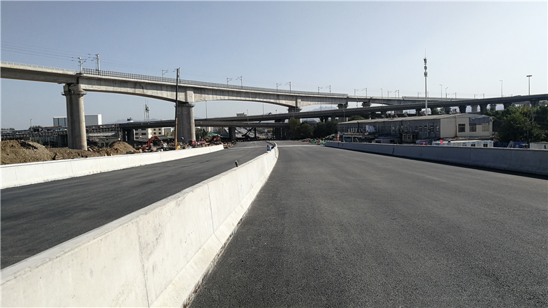 11月2日14時,在我集團(tuán)承建的新機(jī)場高速連接線(雙埠-夏莊段)工程一標(biāo)段施工現(xiàn)場,攤鋪機(jī)階梯式排列、人員分工協(xié)作,自卸車上傾倒而下的滾燙的瀝青持續(xù)不斷地攤鋪到路面上,首段主線瀝青正式開鋪。集團(tuán)公司在全線十多家參建單位中拔得頭彩,第一家開展瀝青面層攤鋪?zhàn)鳂I(yè)。