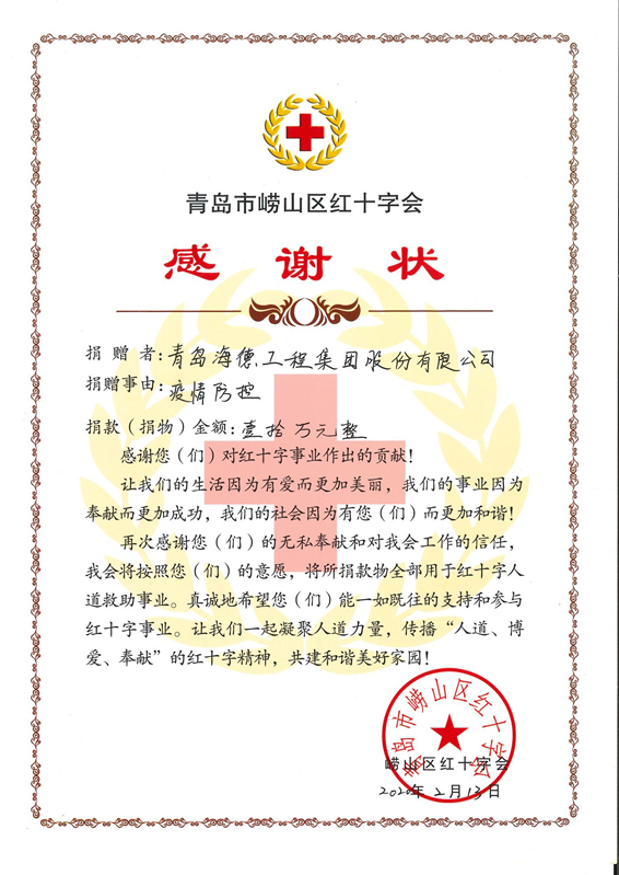 新冠疫情發(fā)生后集團(tuán)及海內(nèi)外各分支機(jī)構(gòu)、所有員工都伸出援助之手抗擊疫情,向紅十字會(huì)、慈善總會(huì)、社區(qū)街道、布基納法索政府 、赤道幾內(nèi)亞醫(yī)療中心捐款捐物,被評(píng)選為“最具社會(huì)責(zé)任感企業(yè)”。