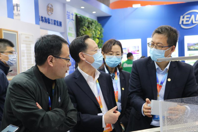 中國(guó)城鎮(zhèn)供水排水協(xié)會(huì)會(huì)長(zhǎng)章林偉、山東省住房和城鄉(xiāng)建設(shè)廳城市建設(shè)處處長(zhǎng)王強(qiáng)蒞臨集團(tuán)展位指導(dǎo)工作