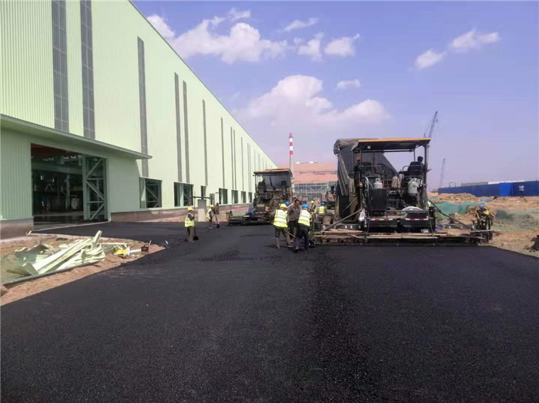 青鋼公輔道路工程物流高線段進(jìn)行底層瀝青攤鋪