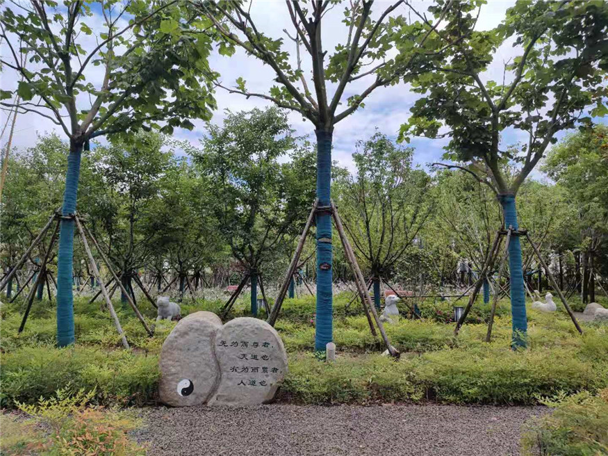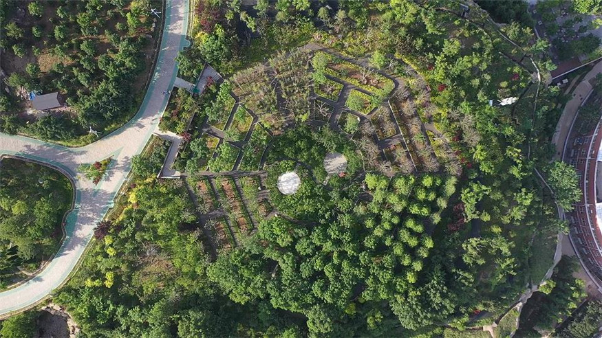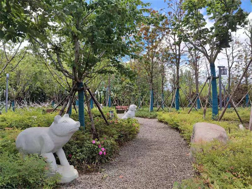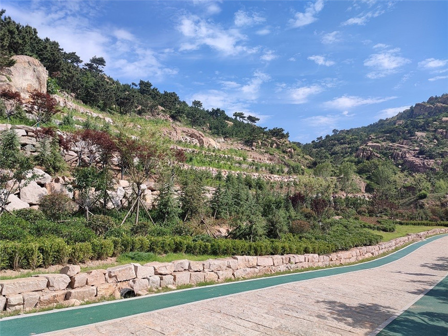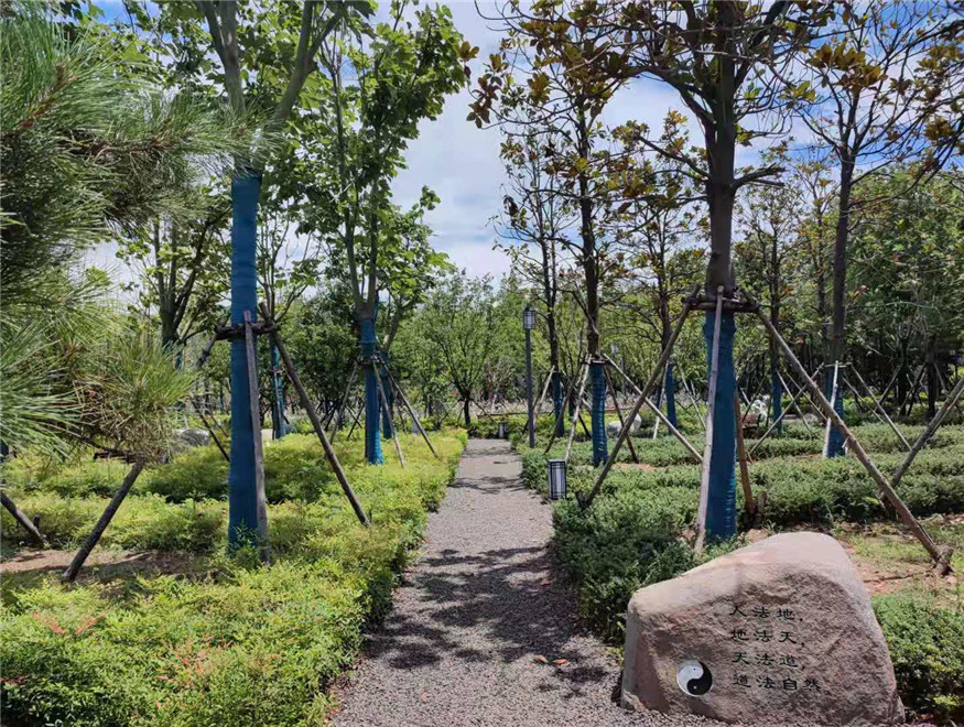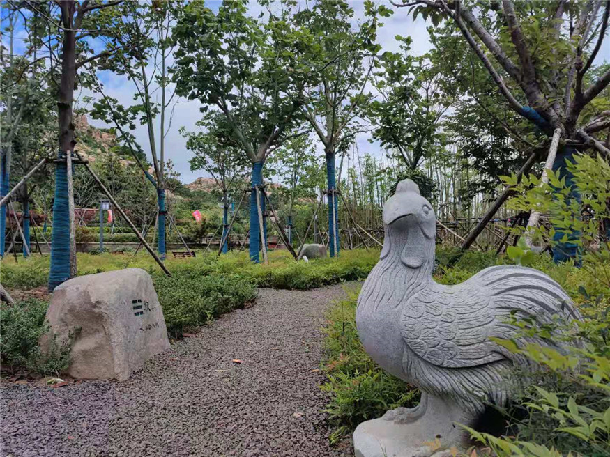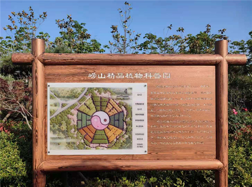 本工程總建設(shè)面積約3萬(wàn)平方米,建設(shè)內(nèi)容包括嶗山精品植物科普?qǐng)@、金嶺山南入口東北側(cè)綠地、登山步道、防火通道、健身步道和生態(tài)邊溝改造提升等。該工程取中國(guó)傳統(tǒng)文化元素“太極八卦”進(jìn)行場(chǎng)地布局,設(shè)置卦象置石、十二生肖雕塑、景觀置石等景觀小品,建設(shè)多條林間健身步道對(duì)各個(gè)植物組團(tuán)、林間休憩節(jié)點(diǎn)進(jìn)行串聯(lián),搭配花草樹(shù)木80余種,塑造了豐富的植物色彩和綠化層次,在呈現(xiàn)景觀效果的同時(shí)進(jìn)行了科普知識(shí)宣傳,打造出集休閑游憩、植物科普、傳統(tǒng)文化展示為一體的生態(tài)景觀。