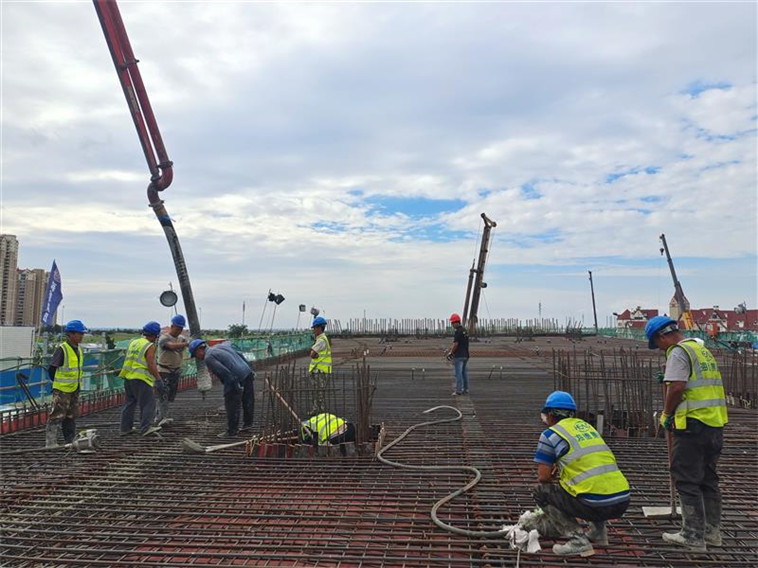 在長達(dá)46小時的澆筑過程中,集團(tuán)公司高度重視,派駐專家組到施工現(xiàn)場,幫助項(xiàng)目組織協(xié)調(diào)、充實(shí)技術(shù)力量,全程監(jiān)督作業(yè),確保澆筑的順利完成。