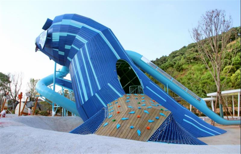 從空中鳥瞰三明兒童公園,像一只翩翩起舞的蝴蝶。蝴蝶翅膀外圈是800米長(zhǎng)的健身跑道;左蝶翼是小紅軍營(yíng)地、星云樂園、迷霧森林,小紅軍營(yíng)地游樂設(shè)施在設(shè)計(jì)中蘊(yùn)含了紅軍爬雪山、過草地、強(qiáng)渡瀘定橋等我們中國(guó)共產(chǎn)黨人在紅軍路上的一些場(chǎng)景,對(duì)孩子們今后的成長(zhǎng)起到了特殊意義;右蝶翼是瘋狂動(dòng)物城、戲水區(qū)、消防小勇士營(yíng)地,消防小勇士營(yíng)地里的滑道、消防知識(shí)宣傳欄、消防車等給孩子們普及著消防知識(shí),提高孩子們的生存技能;蝶腹中間是星星廣場(chǎng)、星光草場(chǎng)、星耀構(gòu)架三個(gè)主體場(chǎng)地,星星廣場(chǎng)及星耀構(gòu)架等一系列的主體理念是國(guó)旗上的五角星,在實(shí)際游玩中可以適當(dāng)?shù)囊龑?dǎo),讓小朋友們聯(lián)想到我們國(guó)旗上的五角星,從而拓展國(guó)旗的紅色教育。