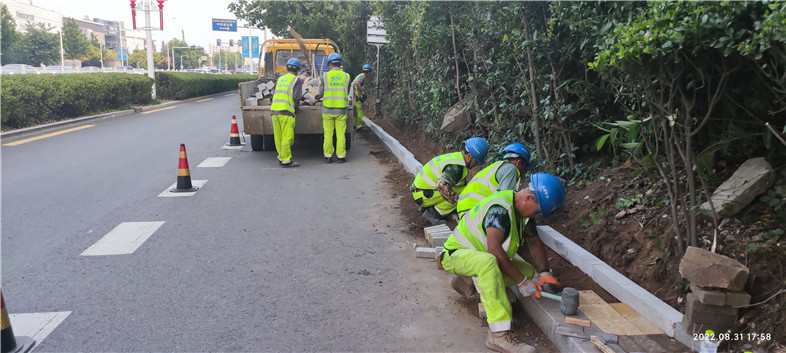 嶗山區(qū)道路養(yǎng)護(hù)現(xiàn)場(chǎng)↑
