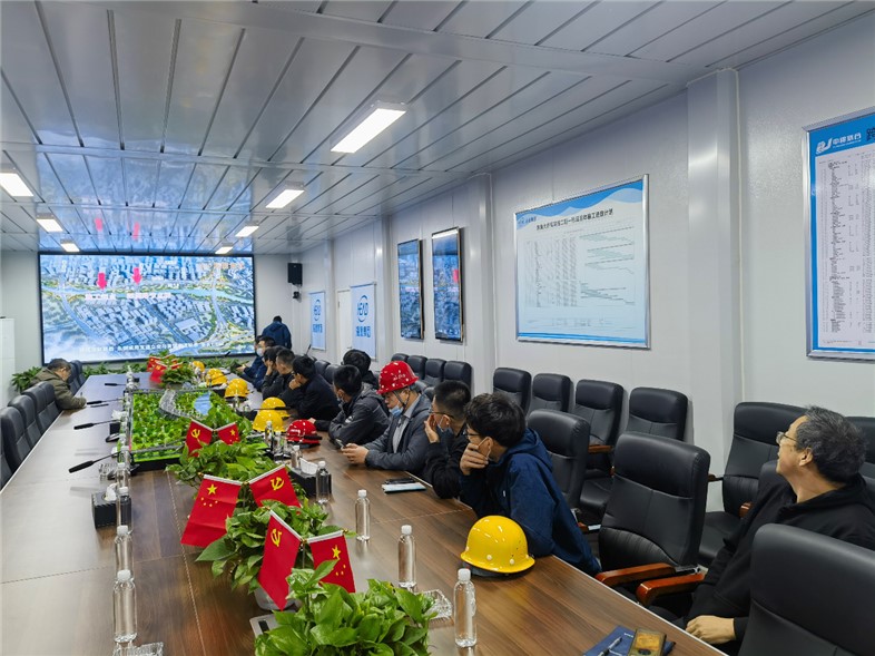 會上首先由項目智慧化工地負責人李福澤對項目的智慧化管理和應用進行了系統(tǒng)的介紹,通過線上平臺展示,只需動動鼠標,就可了解項目的所有信息,還可以實時監(jiān)控環(huán)境、進度、質(zhì)量、安全等全方面信息。通過遠程連線智能安全帽,可以與佩戴者實時連線并下達指令;新引進的“北斗精確定位”技術(shù),可為施工人員提供高精度的定位數(shù)據(jù),從而確保高效、精準的鋼結(jié)構(gòu)鋼梁安裝。各種新奇的功能和應用引發(fā)參會人員的熱烈討論,會上學習氣氛濃厚。培訓結(jié)束后工管部又集中組織各參會人員對施工現(xiàn)場進行了觀摩,取得良好效果。