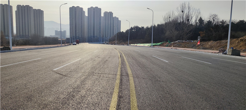 集團(tuán)承建的唐河路-安順路打通工程作為我市技術(shù)、理念創(chuàng)新的樣板工程,實(shí)現(xiàn)了五大亮點(diǎn):一是綠色建造-天然石材“零使用”。創(chuàng)新打造國(guó)內(nèi)首例25公分寬人造仿石混凝土路緣石,全線7萬(wàn)米路緣石、界石、花壇石,5.6萬(wàn)平方米人行道板均采用人造仿石替代花崗巖、大理石等常規(guī)建設(shè)材料,在全市首次實(shí)現(xiàn)天然石材“零使用”。二是搭建積木-推廣裝配式施工工藝。充分發(fā)揮裝配式施工“標(biāo)準(zhǔn)化設(shè)計(jì)、工廠化生產(chǎn)、裝配化施工”的優(yōu)勢(shì),全線橋梁和管廊標(biāo)準(zhǔn)段采用預(yù)制裝配式結(jié)構(gòu)。綜合管廊標(biāo)準(zhǔn)段均采用雙艙矩形預(yù)制裝配式結(jié)構(gòu),是青島市首次采用整體式綜合艙室預(yù)制管廊。預(yù)制管廊結(jié)構(gòu)長(zhǎng)11.35米、高4.5米、板厚0.5米,單節(jié)寬1.5米、重量超過(guò)60噸。管廊建成后,電力、通信、給水、供熱、再生水等5種管線集中入廊敷設(shè),最大限度實(shí)現(xiàn)土地集約化利用。較傳統(tǒng)模式,可節(jié)約工期約20%,節(jié)省現(xiàn)場(chǎng)作業(yè)人員及用地約50%,減少建筑垃圾排放約70%。三是集約賦能-踐行多桿合一、多箱整合。路燈、交通設(shè)施等桿件由808處合并設(shè)置為590處。電力、通信等零散箱體由149處整合為33處,打造集約節(jié)約新模式。四是生態(tài)優(yōu)先-打造“海綿城市”示范工程。運(yùn)用“滲、滯、蓄、凈、用、排”原理,沿線設(shè)置9萬(wàn)平透水鋪裝,3.3萬(wàn)平下沉式綠地,高標(biāo)準(zhǔn)落實(shí)海綿城市理念;五是功能完備-系統(tǒng)化打造復(fù)合走廊。道路交通順暢:全線設(shè)置高標(biāo)準(zhǔn)、系統(tǒng)化的交通流量采集和智慧信控系統(tǒng),打造貫通南北的交通出行“綠波帶”,實(shí)現(xiàn)準(zhǔn)快速路功能,緩解我市南北交通壓力;它的建成投入使用對(duì)完善青島主干路網(wǎng)體系,加強(qiáng)主城區(qū)與青島膠東國(guó)際機(jī)場(chǎng)的交通聯(lián)系,疏解青島火車北站進(jìn)出壓力,分擔(dān)環(huán)灣路、重慶路現(xiàn)行超飽和的交通流起到重要作用。