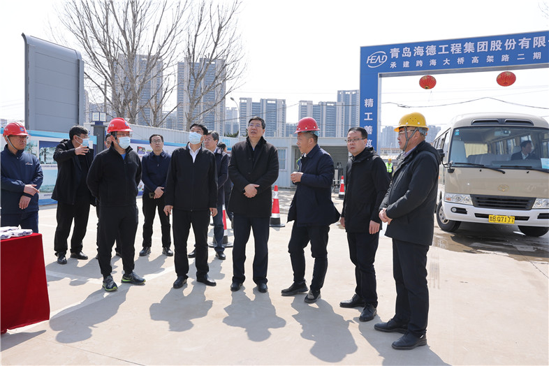3月26日上午,省住建廳廳長王玉志,市住建局局長畢維準(zhǔn)、副局長劉友森、副局長季成濤、副局長牛永波等領(lǐng)導(dǎo)一行蒞臨我集團(tuán)承建的跨海大橋高架路二期工程項(xiàng)目部指導(dǎo)工作,集團(tuán)董事長鞏光磊陪同。