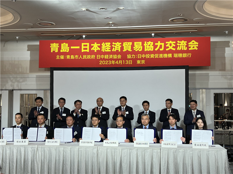 2023年4月13日下午,由青島市人民政府、日本日中經(jīng)濟(jì)協(xié)會(huì)主辦,日本日中投資促進(jìn)機(jī)構(gòu)、瑞穗銀行協(xié)辦,青島市商務(wù)局承辦的“日本-青島經(jīng)貿(mào)合作交流會(huì)”在東京都的新大谷酒店舉行。青島市委副書(shū)記、市長(zhǎng)趙豪志,日本大使館商務(wù)公使宋耀明,青島市政協(xié)副主席、嶗山區(qū)委書(shū)記張?jiān)綎|省政府駐日本經(jīng)貿(mào)代表處首席代表郭全濤,中國(guó)貿(mào)促會(huì)駐日本代表處首席代表史銘,青島市商務(wù)局局長(zhǎng)王志俊,青島市政府外辦主任范奇志,青島市政府秘書(shū)長(zhǎng)李虎成等領(lǐng)導(dǎo)出席交流會(huì)。此次交流會(huì)由青島市政府秘書(shū)長(zhǎng)李虎成主持。集團(tuán)董事長(zhǎng)鞏光磊、副總裁白正海受邀參加交流會(huì)。交流會(huì)上集團(tuán)董事長(zhǎng)鞏光磊與日本山形新興株式會(huì)社社長(zhǎng)竹田良一簽訂戰(zhàn)略合作協(xié)議。