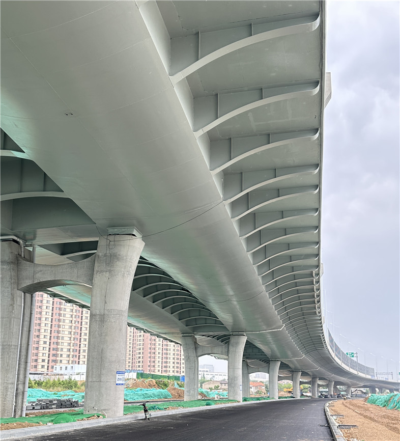 活動最后,觀摩人員又來到集團(tuán)承建的跨海大橋高架路二期工程施工現(xiàn)場,實地查看了項目施工成果。集團(tuán)承建范圍內(nèi)施工內(nèi)容于2023年4月底已全部完成,全線第一個全面完成施工任務(wù),比原進(jìn)度目標(biāo)提前2個月。該項目鋼箱梁加工,采用高精尖加工設(shè)備,下料階段采用激光等離子切割機(jī)、數(shù)控車床;焊接過程采用智能焊接機(jī)器人、智能埋弧設(shè)備、豪克能焊接應(yīng)力消除設(shè)備;除銹階段采用水噴砂環(huán)保設(shè)備等國內(nèi)頂尖設(shè)備。鋼箱梁底板為45mm厚的Q345qD鋼板,為克服雙曲面底板加工這一技術(shù)難題,通過工藝試驗,合作研發(fā)了2000t超大噸位液壓設(shè)備,成型質(zhì)量好、生產(chǎn)效率高。鋼箱梁吊裝,創(chuàng)新采用“北斗精確定位”監(jiān)測系統(tǒng),實時精確定位平面位移及高程,確保每個梁段嚴(yán)絲合縫地落至指定位置。