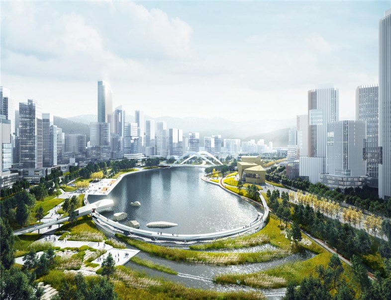 青島市張村河(嶗山段一期)綜合治理工程位于嶗山區(qū)片區(qū),西側(cè)起點(diǎn)為青銀高速路,向西側(cè)伸,終點(diǎn)至濱海大道,河道全長(zhǎng)約4000米,研究寬度150~480米不等,總面積約118.4萬(wàn)平方米。工程內(nèi)容主要包括防洪工程、橋梁工程、管線工程、水環(huán)境處理工程、景觀環(huán)境工程、智能工程、附屬建筑工程等。工程實(shí)施將張村河核心區(qū)兩岸打造為城景相融、環(huán)境優(yōu)美的高品質(zhì)景觀長(zhǎng)廊;秉承公園城市的內(nèi)涵,從環(huán)境、城市和人的維度出發(fā),拓寬水際帶,恢復(fù)生物棲息地,打造連通山海的多自然、高彈性生態(tài)廊道;以水城一體為目標(biāo),營(yíng)造參與共享、有活力的城市公共水岸空間。