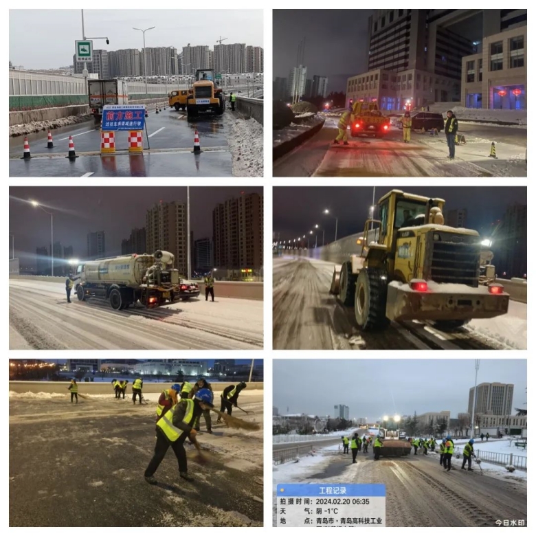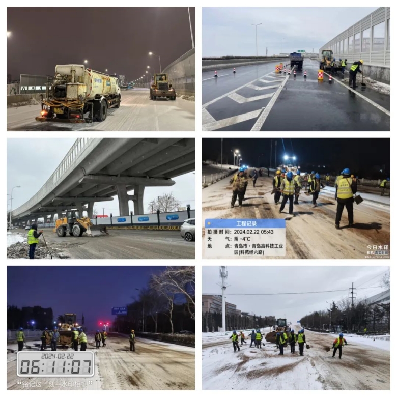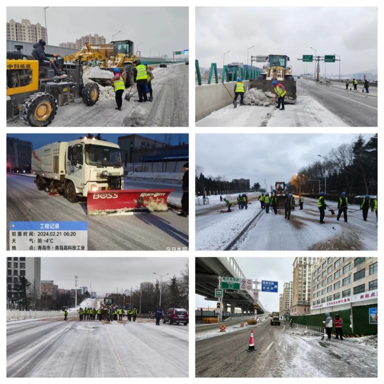 受強冷空氣影響,自2月19日晚開始,青島市迎來強降雪天氣,積雪、道路結(jié)冰和大風(fēng)降溫,對城市道路交通和市民出行產(chǎn)生較大影響。集團(tuán)應(yīng)上級要求,迅速啟動應(yīng)急預(yù)案,集團(tuán)機械分公司、各項目部迅速組織人員成立應(yīng)急清雪隊伍,對嶗山區(qū)政府、跨海大橋二期橋面、重慶高架路及橋下道路、海爾路、銀川東路、松嶺路、苗嶺路、株洲路、仙霞嶺路、小麥島橋等30多條市區(qū)主干道路進(jìn)行清雪除冰,鋪灑融雪劑、防滑砂,最大程度的減少惡劣天氣對市民出行和生產(chǎn)生活帶來的不利影響,消除安全隱患。