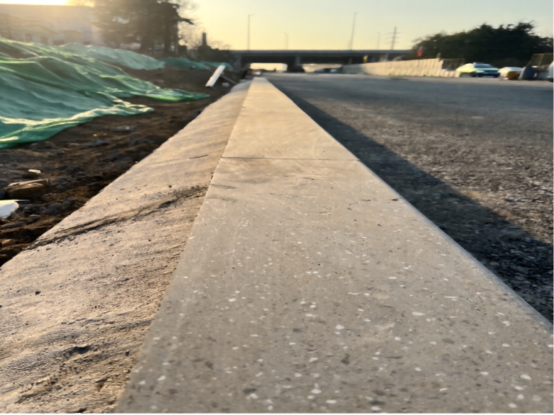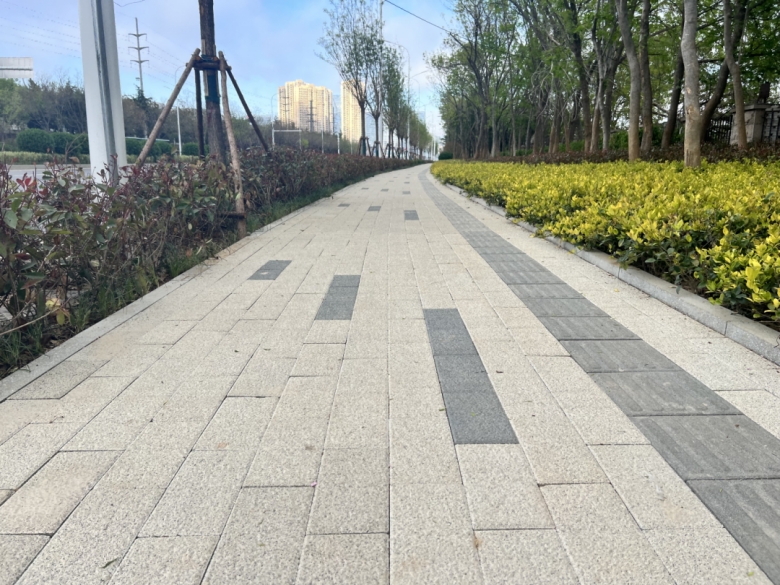 項目采用的仿石路緣石、環(huán)保透水磚和反光路緣石等創(chuàng)新材料,由集團全資子公司青島海德信達新型材料科技有限公司自主研發(fā)生產(chǎn),不僅外觀典雅,效果出眾,而且采用再生資源制作,質(zhì)量從源頭開始控制,結(jié)合定制化生產(chǎn),更加精準(zhǔn)地契合生態(tài)環(huán)保和設(shè)計要求。并使用集團一分公司自主創(chuàng)新研發(fā)的粉塵收集房進行材料切割,既實現(xiàn)了降塵目標(biāo),又改善了工人的作業(yè)環(huán)境,充分體現(xiàn)了集團以員工為本的管理理念,這一做法得到了各級領(lǐng)導(dǎo)的贊譽,并已在嶗山區(qū)廣泛推廣使用。