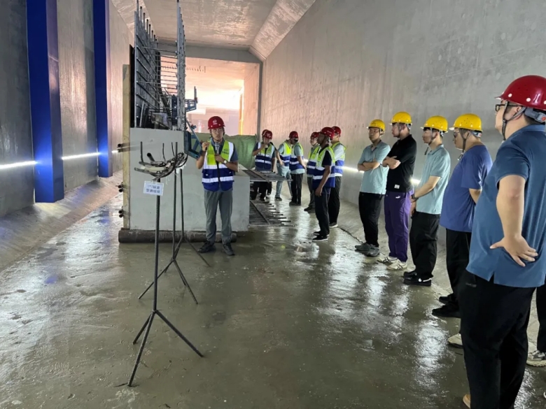 在觀摩現(xiàn)場,項目總工葛帥就明挖區(qū)間一期圍護(hù)結(jié)構(gòu)到主體結(jié)構(gòu)施工過程中的精細(xì)化管控亮點(diǎn)、施工過程中班組建設(shè)、世界一流地鐵建設(shè)質(zhì)量精細(xì)化管理、橋隧共建課題研究介紹及階段性成果進(jìn)行了詳細(xì)的介紹和講解。與會人員對基坑開挖、灌注樁網(wǎng)噴混凝土、高壓旋噴樁、冠梁、擋墻、地下連續(xù)墻、錨索、結(jié)構(gòu)防水質(zhì)量精細(xì)化管控以及實(shí)體樣板、班組建設(shè)情況進(jìn)行了現(xiàn)場觀摩和經(jīng)驗(yàn)交流,紛紛表示此次觀摩交流不僅感受到了精細(xì)化管理對提升工程品質(zhì)的顯著優(yōu)勢,更學(xué)習(xí)到了新材料、新技術(shù)、新工藝應(yīng)用的寶貴經(jīng)驗(yàn),后續(xù)將以本次觀摩為契機(jī),學(xué)習(xí)借鑒精細(xì)化管理經(jīng)驗(yàn),助力工程現(xiàn)場質(zhì)量精細(xì)化管理水平提升。