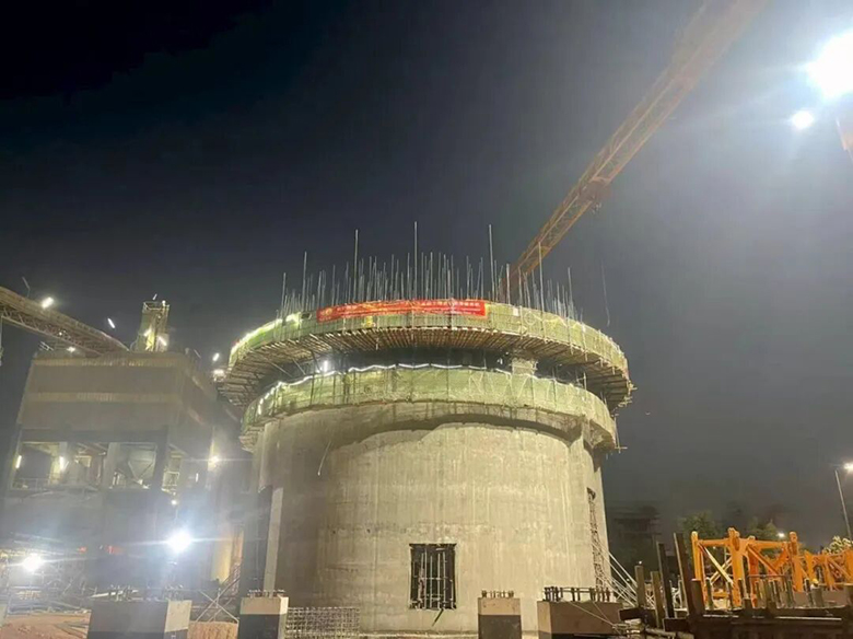 施工期間,項目部全體參建人員晝夜輪班、連續(xù)奮戰(zhàn),全程緊盯模板安裝、鋼筋綁扎、混凝土澆筑、液壓提升等每一個關鍵施工環(huán)節(jié),嚴控施工質(zhì)量與安全底線。海德國際副總經(jīng)理李世俊、分公司負責人廉照文、項目經(jīng)理李鵬翔親臨滑模作業(yè)一線,靠前指揮、全程督導。與一線施工人員并肩堅守,實時研判施工難點、協(xié)調(diào)解決技術(shù)瓶頸,精準把控施工進度與安全管控,確保滑模作業(yè)全程安全、高效、有序推進,彰顯了集團對海外項目建設的高度重視與責任擔當。經(jīng)過為期一周的高強度、高精度施工,鋼筋混凝土筒倉首次滑模施工順利收官,成型質(zhì)量、施工精度均達到設計標準,贏得了甲方及監(jiān)理單位的高度認可與一致好評,為集團在海外市場樹立了良好的專業(yè)形象。
